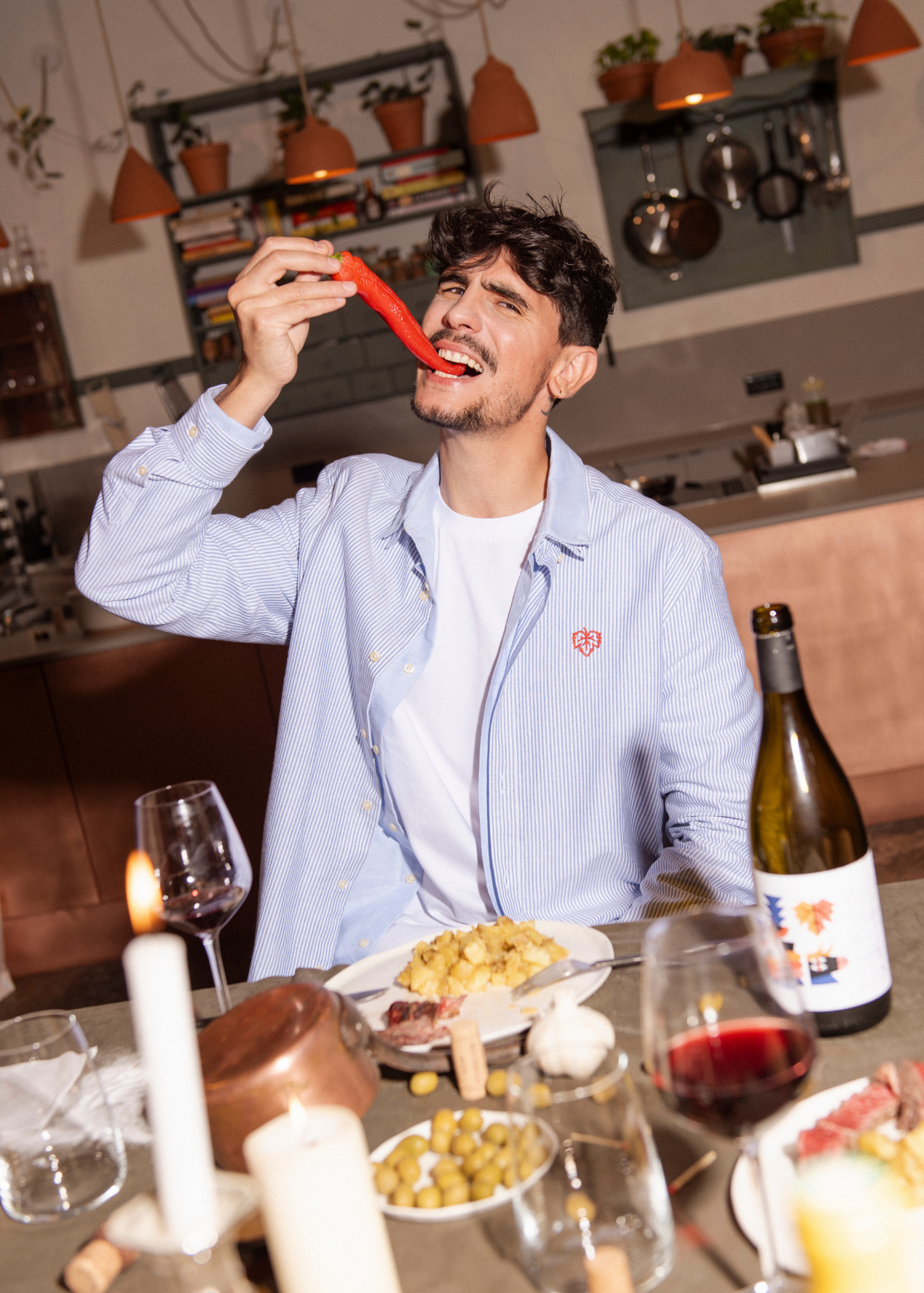 On fait attention à ce qu’il y a dans nos assiettes et dans nos verres et on met le même soin dans nos vêtements. On a envie que tu t'y sentes bien, qu’ils te permettent de vivre ta vie, du matin au soir. Nous sommes NUS, la marque à la feuille de Vigne qui habille les épicuriens.