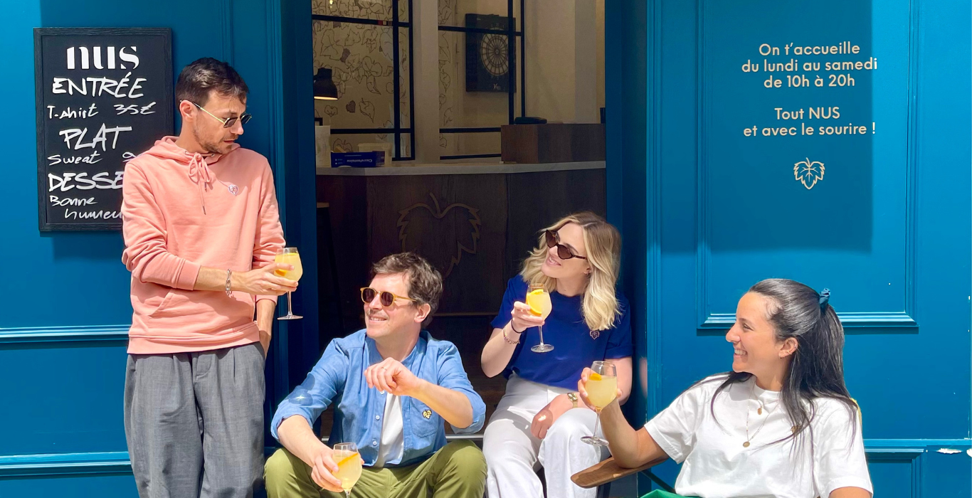 On fait attention à ce qu’il y a dans nos assiettes et dans nos verres et on met le même soin dans nos vêtements. On a envie que tu t'y sentes bien, qu’ils te permettent de vivre ta vie, du matin au soir. Nous sommes NUS, la marque à la feuille de Vigne qui habille les épicuriens.