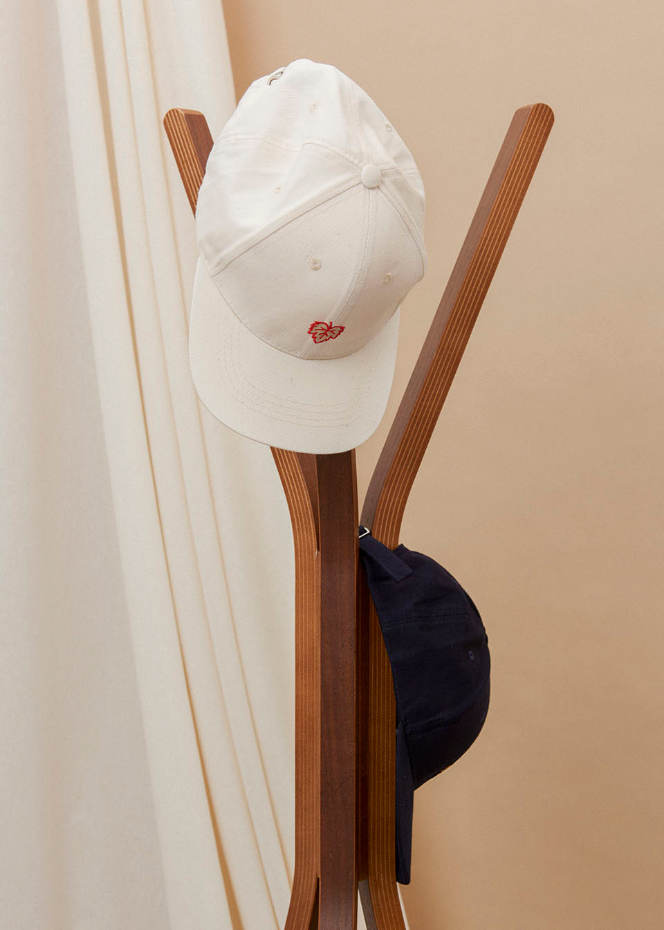 Casquette NUS écrue 100% coton ajustable avec visière et feuille de vigne brodée.